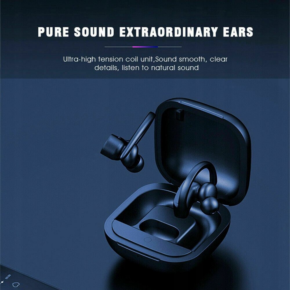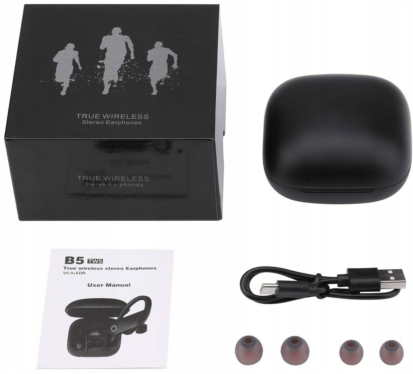 Bezprzewodowe suchawki stereo model B5 TWS douszne z zczaepami na ucho, sterowanie głosowe SIRI