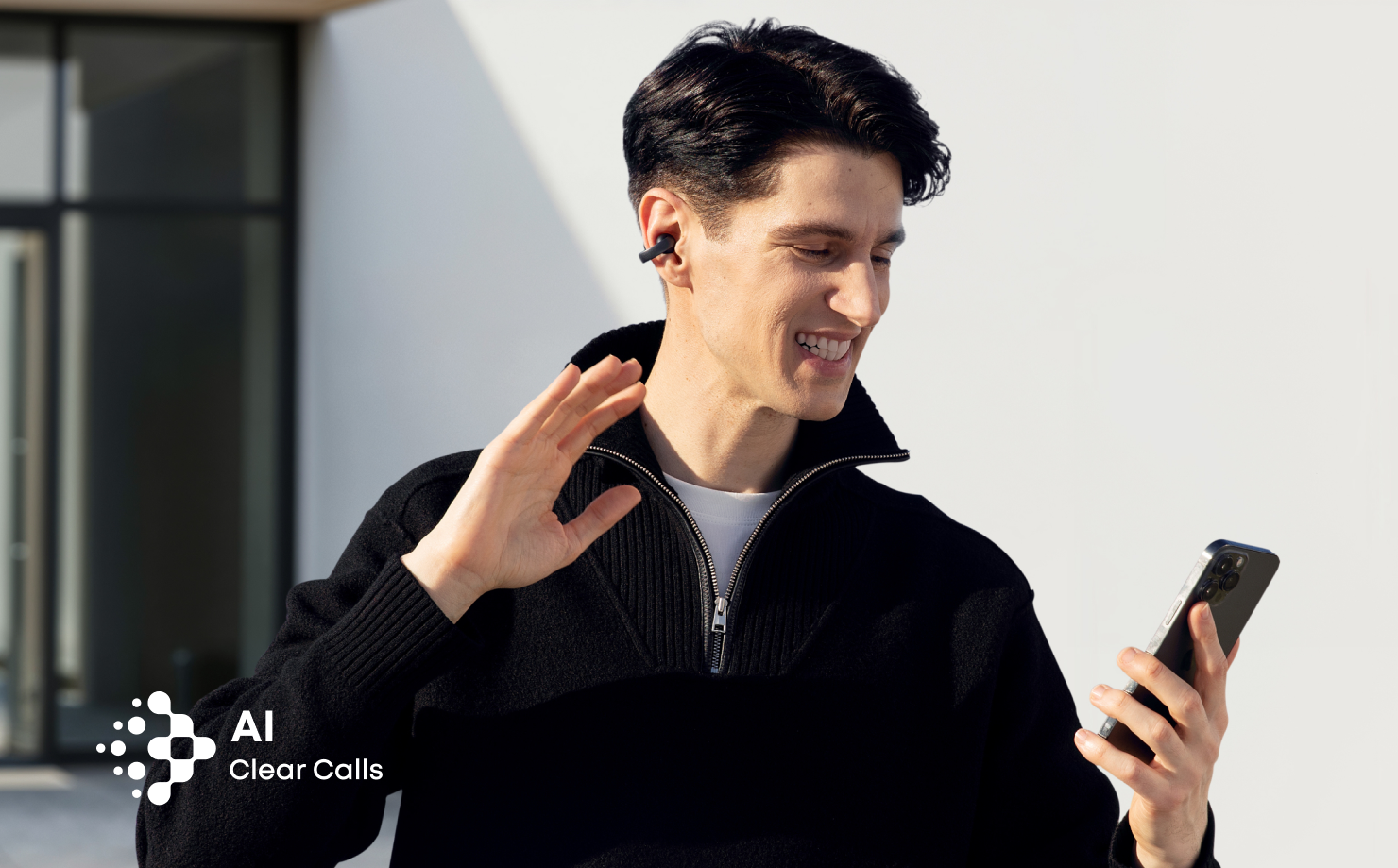 4 mikrofony kształtujące wiązkę, siatki blokujące wiatr i zaawansowany algorytm AI zapewniają, że głos jest 3x wyraźniejszy podczas połączeń - koniec z podnoszeniem głosu, nawet w gwarnej kawiarni.
