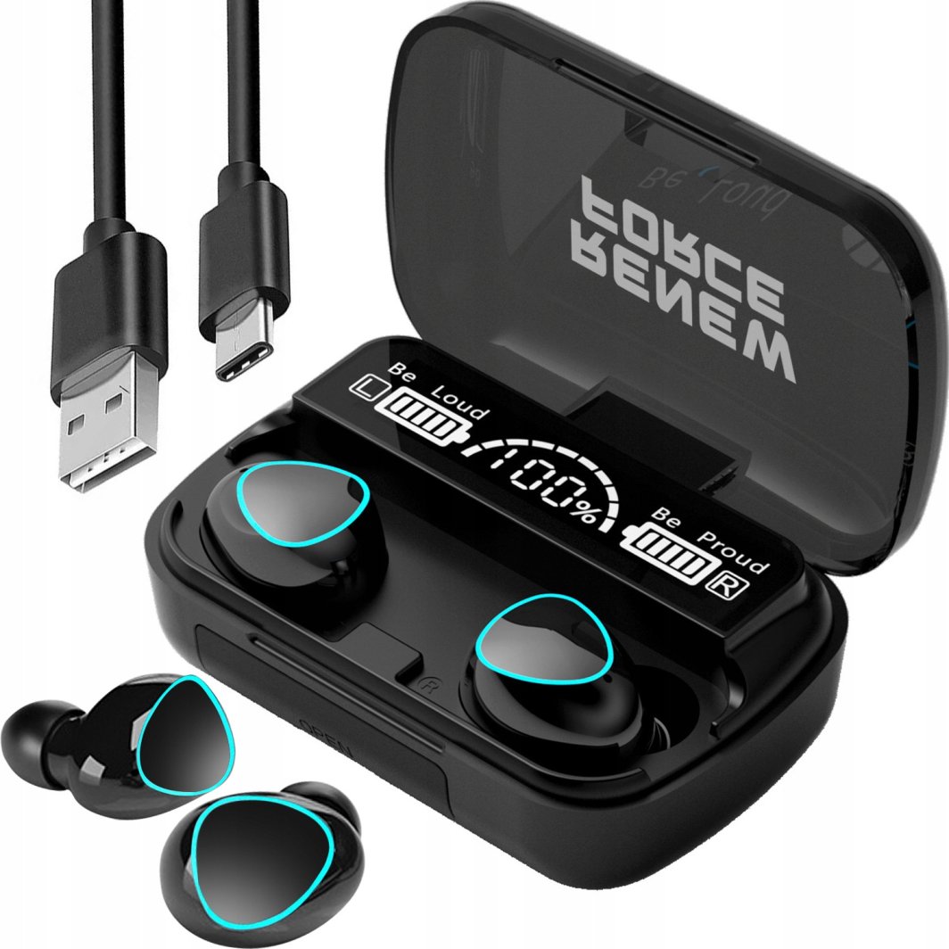 W zestawie ze słuchawkami znajduje się etui z wbudowanym powerbankiem, który umożliwia ładowanie nie tylko słuchawek, ale także innych urządzeń mobilnych. To praktyczne rozwiązanie sprawia, że zawsze masz energię na wyciągnięcie ręki.