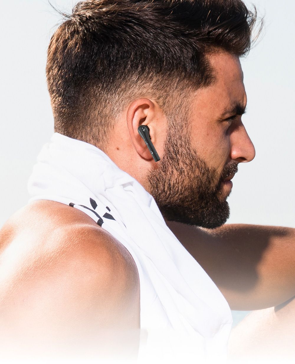 Ochrona IPX5 pozwala na korzystanie ze słuchawek podczas ciężkich treningów na siłowni, a także podczas deszczu, ponieważ są odporne na pot na zachlapanie.
