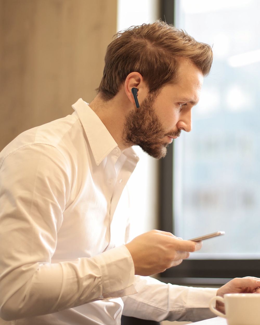Słuchawki włączają się automatycznie, od razu po otwarciu etui oraz automatycznie wyłączają po jego zamknięciu. Wystarczy sparować je tylko raz, by za każdym ponownym użytkowaniem, cieszyć się nimi od razu po wyciągnięciu z etui.