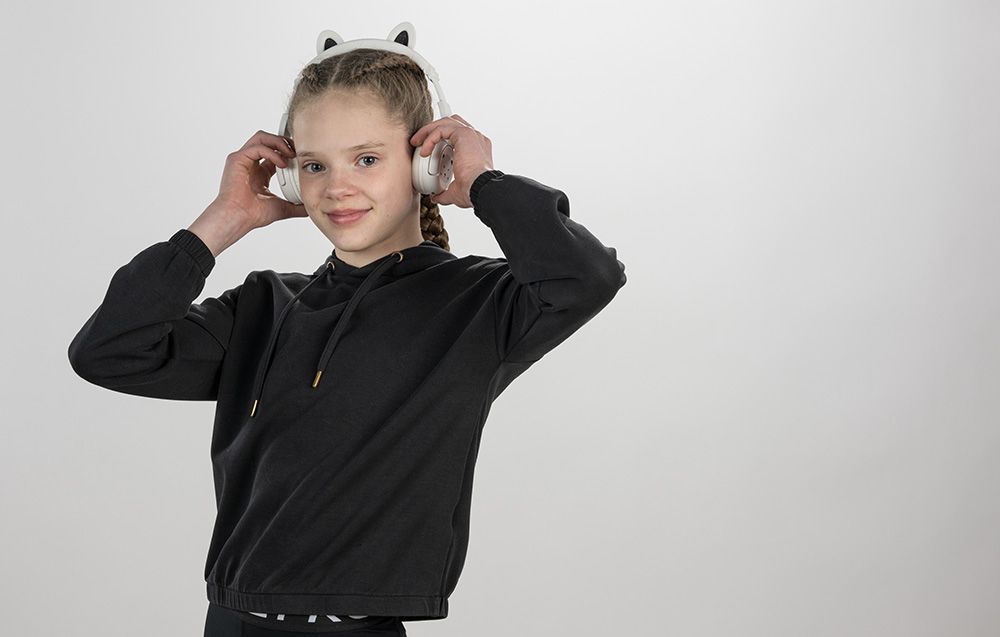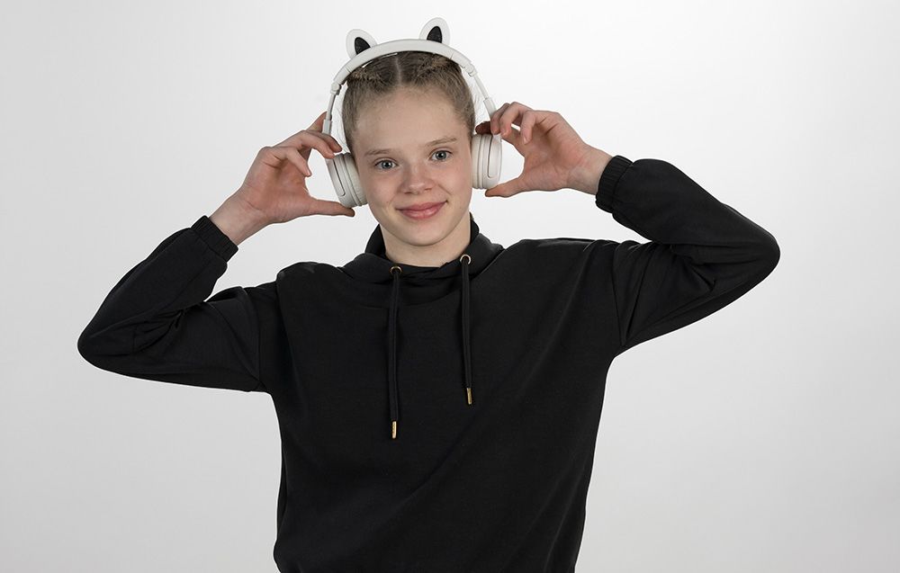 Słuchawki są bezprzewodowe, dzięki czemu dziecko może oglądać filmiki lub słuchać muzyki w dogodnej dla siebie pozycji. Mają ponadto możliwość składania, dzięki czemu stają się kompaktowe. Dodatkowo w zestawie znajduje się także wygodne etui, co sprawia, że transport i przechowywanie gadżetu jest jeszcze łatwiejsze.