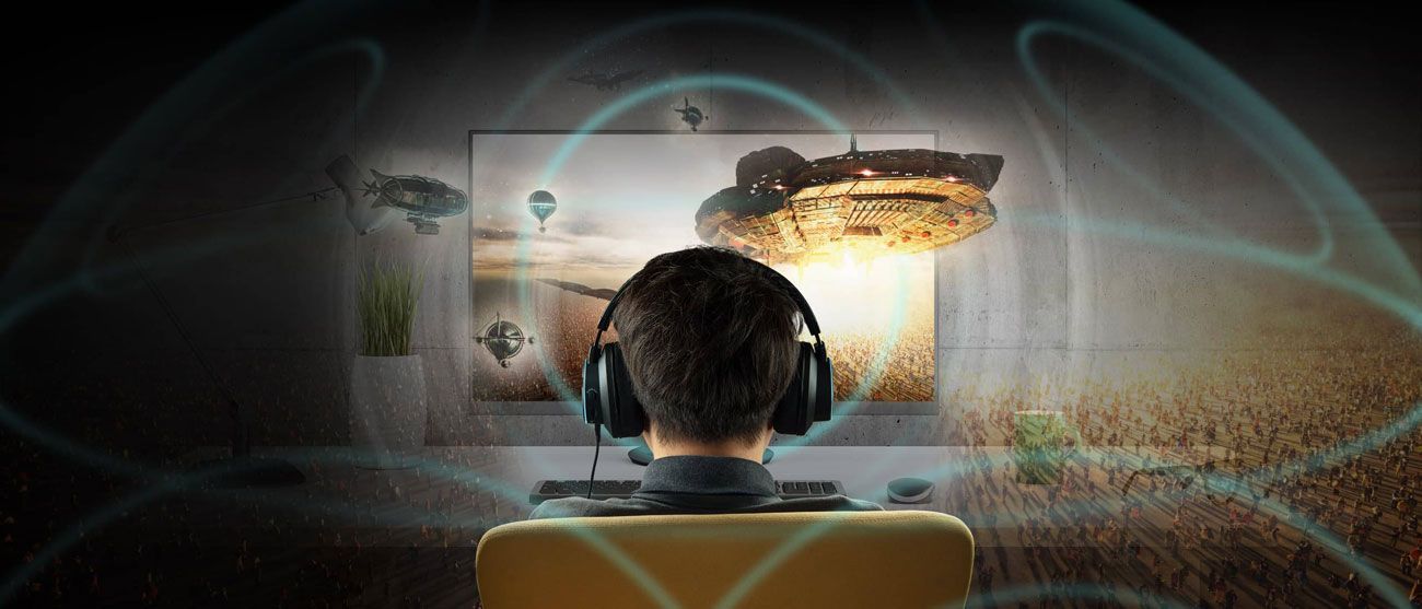 Headset podłączasz do portu USB w komputerze, a potem korzystasz z technologii Super X-Fi. To dzięki niej w muszlach rozbrzmiewa dźwięk holograficzny. Czysty, głęboki, potęgujący emocje.