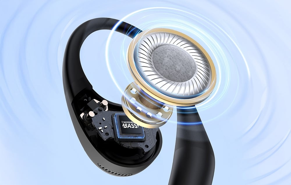 Za wysoką jakość dźwięku w Earfun Open Jump odpowiada 14,2-milimetrowy przetwornik z kompozytu wełnianego, który zapewnia zbalansowane pasmo i dynamiczny bas. Technologia BassSurge™ dodatkowo wzmacnia niskie tony, co sprawia, że słuchanie ulubionej muzyki, podcastów czy filmów to czysta przyjemność. Słuchawki wspierają też standard Hi-Res Audio i kodek LDAC, co gwarantuje szczegółowe i bezstratne brzmienie.