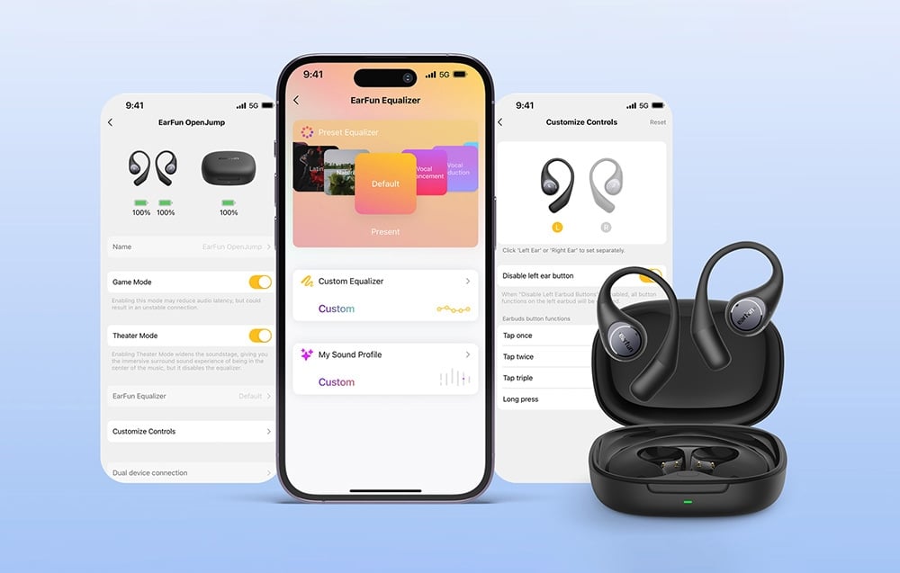 Dzięki aplikacji EarFun Audio zyskujesz pełną kontrolę nad dźwiękiem i funkcjami słuchawek. Za jej pomocą możesz na przykład zmienić ustawienia equalizera, dostosować sterowanie, włączyć tryb kinowy lub gamingowy, a także zaktualizować oprogramowanie.