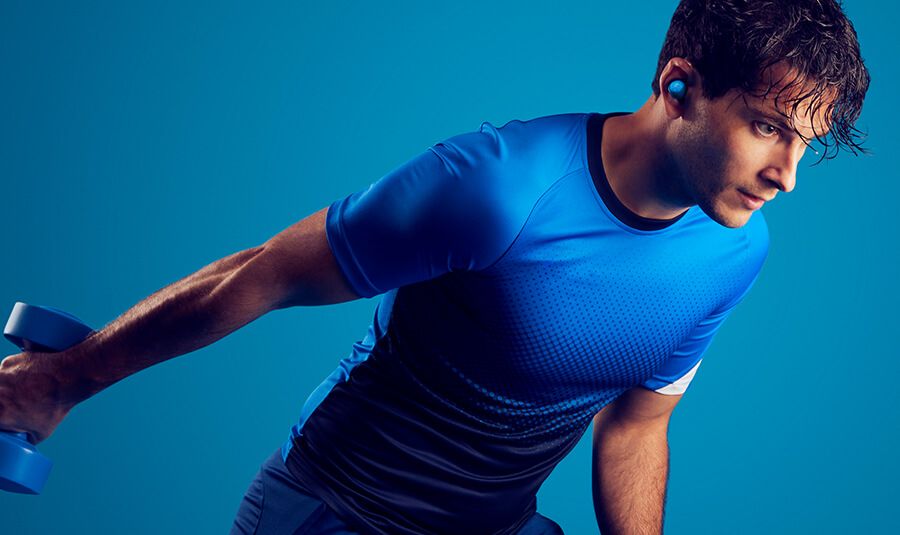 Przeznaczony do uprawiania sportu bez przewodów. Trenuj wygodnie dzięki systemowi Secure-Fit zapewniającemu dyskretne i bezpieczne dopasowanie. Bez względu na to, jak się poruszasz, Twoje słuchawki pozostają na swoim miejscu podczas sesji treningowych.