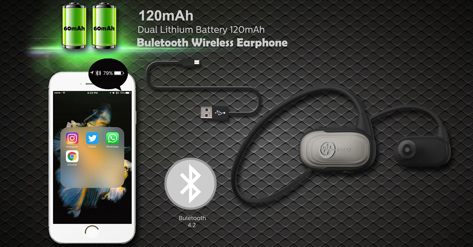 Słuchawki E'NOD Waveport sprawdzają się zarówno na ulicy, jak i na boisku. Bezprzewodowa technologia Bluetooth zapewnia łączność na odległość do 10m z włączoną funkcją Bluetooth, dzięki czemu możesz się swobodnie poruszać i skupić na ćwiczeniach. Akumulator wystarcza nawet na 8 godzin odtwarzania muzyki.