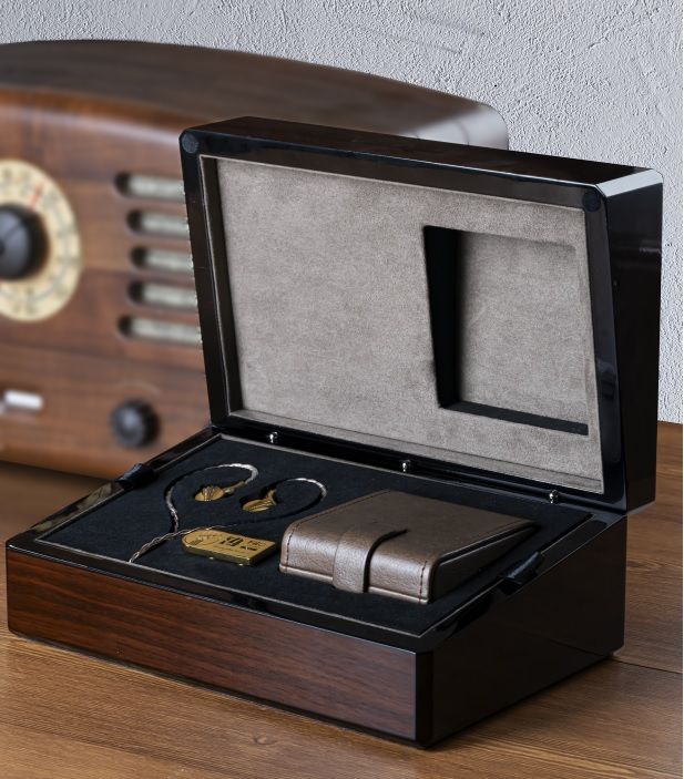 FDX wyraża nasze pragnienie wyjątkowego kunsztu w każdym aspekcie, nawet jeśli chodzi o opakowanie całości zastawu, które stanowi luksusowe, eleganckie, drewniane pudełko, w którym znajduje się FDX wraz z akcesoriami.