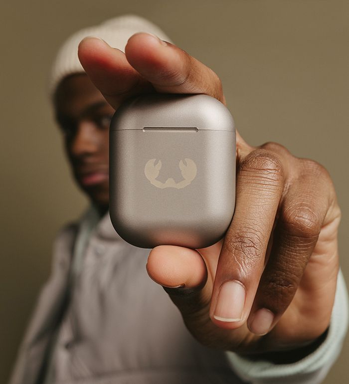 Etui ładujące Twins 3 ma gładkie krzywizny i zaokrąglone krawędzie. Miękkie metaliczne wykończenie nadaje im odważny i wyrafinowany wygląd. Diody LED wewnątrz etui ładującego wskazują stan ładowania.