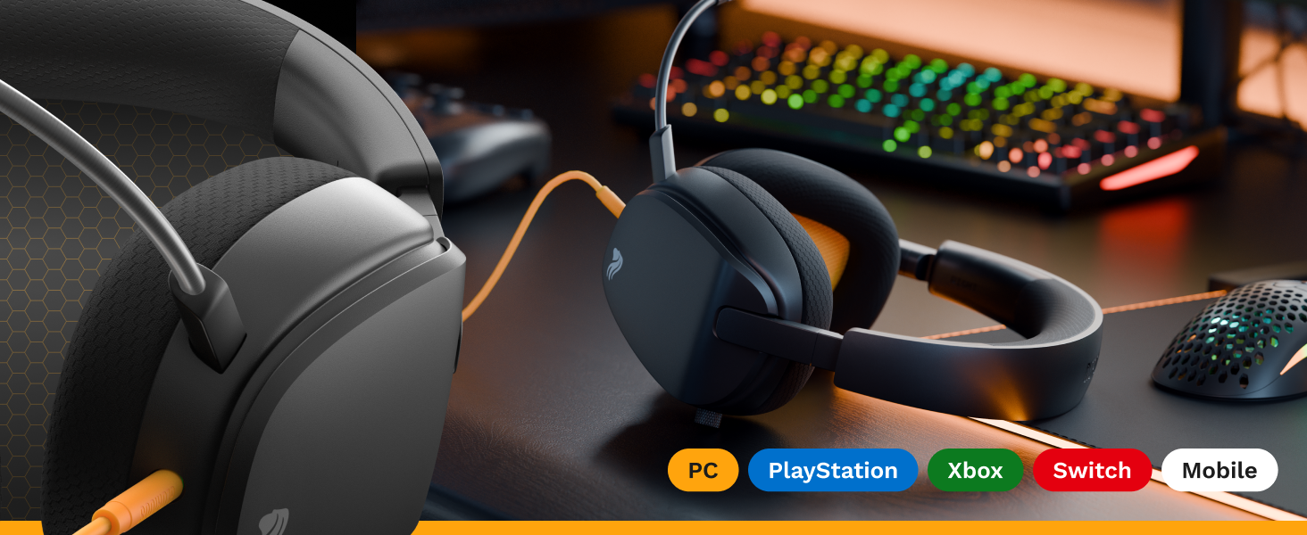 Zestaw jest w pełni uniwersalny i współpracuje z komputerami PC, konsolami PlayStation, Xbox, Switch oraz urządzeniami mobilnymi. Do działania wystarczy standardowe gniazdo 3,5 mm – po prostu podłączasz słuchawki i od razu korzystasz z ich możliwości.