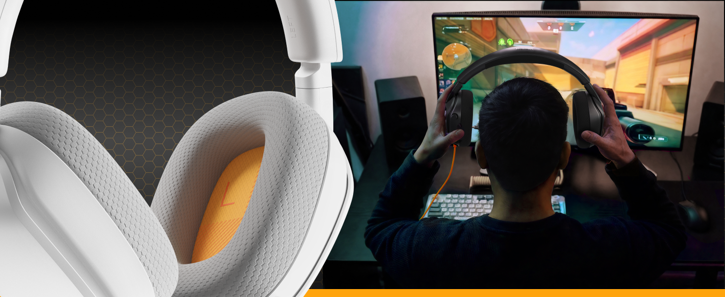 Konstrukcja słuchawek opiera się na lekkim pałąku z pianką oraz przepuszczających powietrze muszlach. Takie rozwiązanie zapewnia wyjątkową wygodę przez długie godziny, nawet wtedy, gdy sesja „jeszcze tylko jednej gry” znacznie się przedłuża.