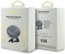 Te słuchawki, łącząc stylowy wygląd z funkcjonalnością, zostały starannie zaprojektowane. Posiadają etui z ekoskóry z charakterystycznym wzorem 4G oraz metalowym logo Guess, co czyni je modnym dodatkiem do codziennego użytku.