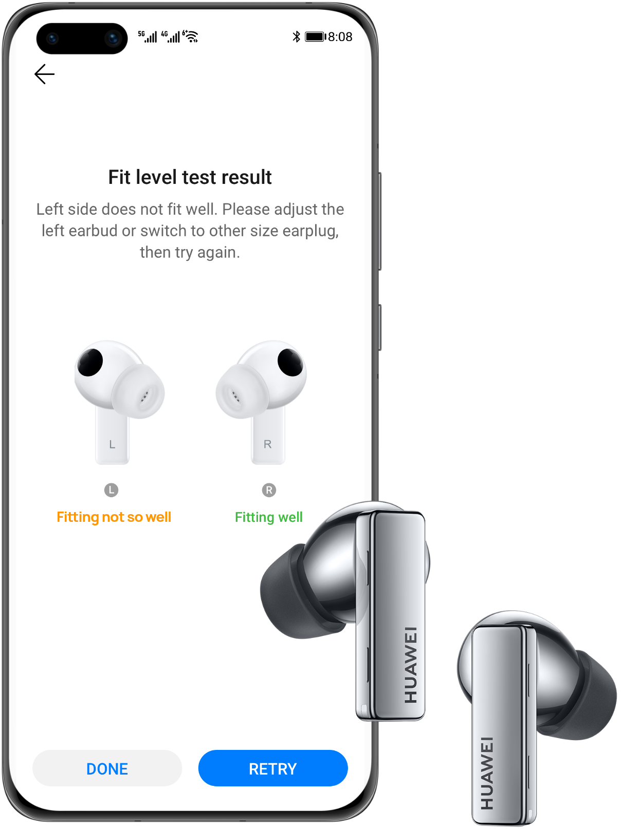 Specjalna funkcja analizuje położenie słuchawek w Twoich uszach i ułatwia wybór nakładek, które zapewnią optymalną redukcję szumów i głębię brzmienia.
