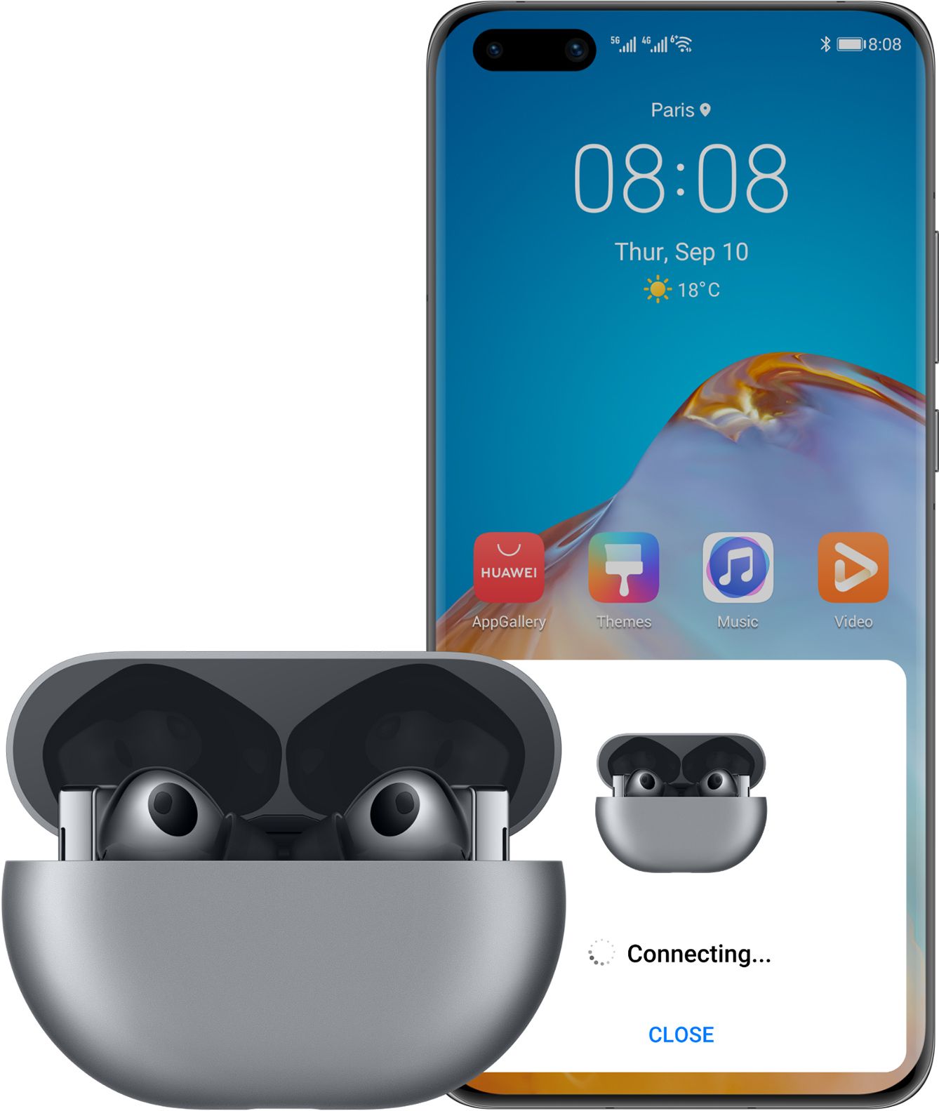 Dzięki zastosowaniu dwóch anten słuchawki HUAWEI FreeBuds Pro zapewniają stabilne połączenie Bluetoot, nawet jeśli telefon znajduje się w torbie czy kieszeni.
