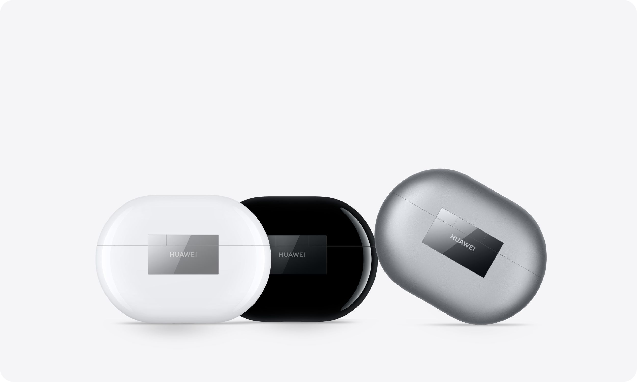 HUAWEI FreeBuds Pro dostępne są w trzech różnych kolorach, dopasowanych do dźwięków, które kochasz: wyraziste srebro z subtelnym metalicznym połyskiem, elegancka i dyskretna ceramiczna biel oraz klasyczna uniwersalna czerń.