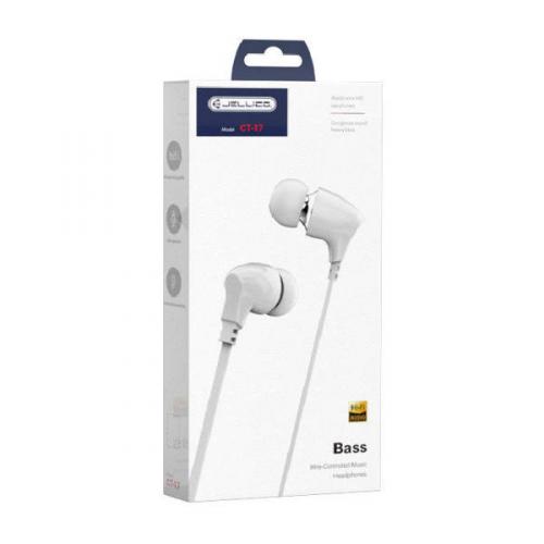Jellico CT-17 uniwersalne słuchawki dokanałowe 3,5 mm z elastycznym kablem mikrofonowym. Przyjazna dla użytkownika lekka konstrukcja douszna o długości 1,2 m.