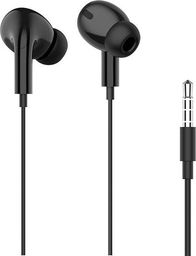 Uniwersalne słuchawki dokanałowe z mikrofonem, kablem o długości 1.2 m, złączem audio minijack 3.5 mm oraz klawiszami sterującymi muzyką i połączeniami.