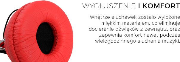 Wnętrze słuchawek, wyłożone zostało miękkim materiałem, który doskonale wygłusza dźwięki docierające z zewnątrz, oraz eliminuje dyskomfort spowodowany wielogodzinnym korzystaniem z produktu. Regulowana długość pałąka pozwala wygodnie dopasować słuchawki do każdego kształtu głowy.