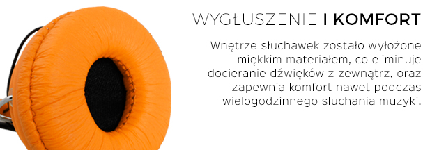 Wnętrze słuchawek, wyłożone zostało miękkim materiałem, który doskonale wygłusza dźwięki docierające z zewnątrz, oraz eliminuje dyskomfort spowodowany wielogodzinnym korzystaniem z produktu. Regulowana długość pałąka pozwala wygodnie dopasować słuchawki do każdego kształtu głowy.
