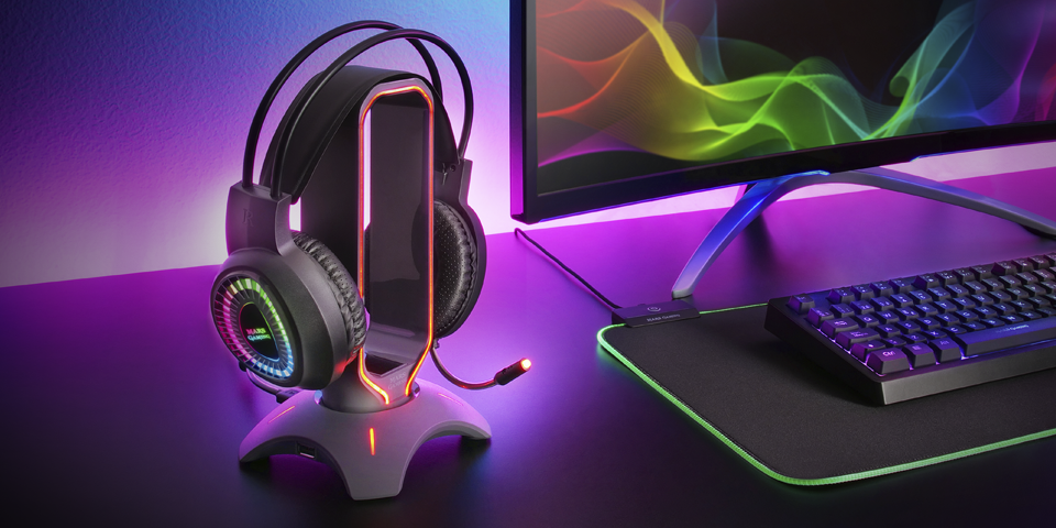 Zaprojektowany, aby zapewnić najwyższy komfort, pałąk MH220 ma konstrukcję zawieszenia i elastyczny, samoregulujący się pasek. Ponadto jego waga 210g sprawi, że zapomnisz, że je nosisz. MH220 zachwyca podświetleniem LED Flow RGB, które zapewnia dynamiczne przejście kolorów tęczy, zwiększając estetykę słuchawek do maksimum i idealnie dopasowując się do konfiguracji RGB.