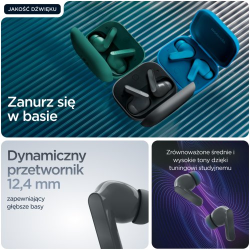Odkryj moc dźwięku z Motorola Moto Buds Bass – bezprzewodowymi słuchawkami dousznymi, które łączą nowoczesny design z zaawansowaną technologią audio. Dzięki dynamicznym przetwornikom, te słuchawki oferują potężny bas, który sprawia, że każda nuta brzmi wyjątkowo. Idealne do słuchania muzyki oraz oglądania filmów, Moto Buds Bass to doskonały wybór dla każdego miłośnika dźwięku.