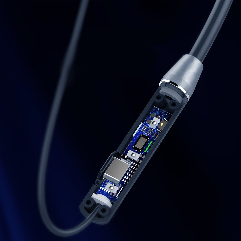 Dodatkowo zamontowane magnesy o przeciwnych biegunach, pozwalają połączyć ze soba słuchawki, dzięki czemu - nie używane - nie zsuną nam się z szyi.