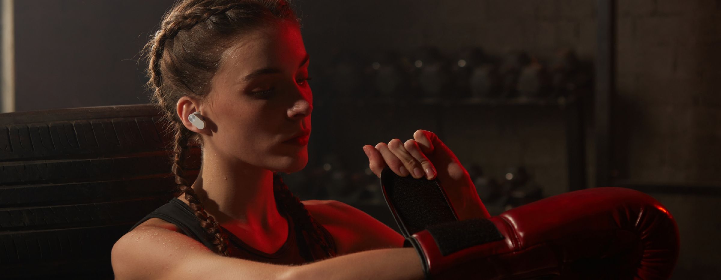 Przejdź tańczącym krokiem przez deszczowe dni i wyczerpujące treningi w słuchawkach Nord Buds 2 ze stopniem ochrony IP55 gwarantującym odporność na pot i wodę.