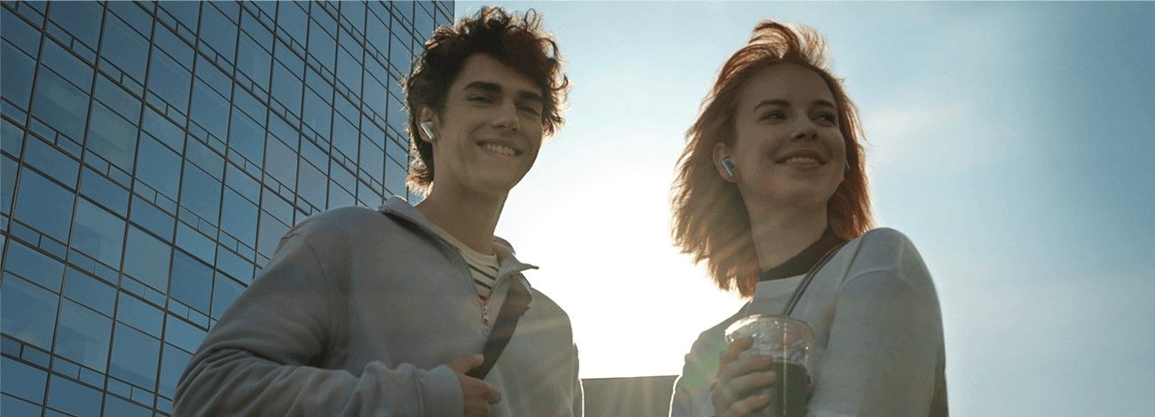Poznaj system aktywnej redukcji szumów, który stworzy optymalne środowisko do słuchania muzyki gdy jedziesz do pracy autobusem albo chcesz skupić się na pracy w gwarnym biurze. Usłysz wyraźnie każde słowo Rozmawiaj komfortowo dzięki słuchawkom OPPO Enco Air2 Pro. Każda z nich jest wyposażona w dwa mikrofony o wysokim stosunku sygnału do szumu. Dotknij słuchawki i przełącz się między trybem redukcji szumów a trybem przepuszczalności. Dzięki temu drugiemu rozwiązaniu będziesz słyszeć i muzykę, i dźwięki z otoczenia.