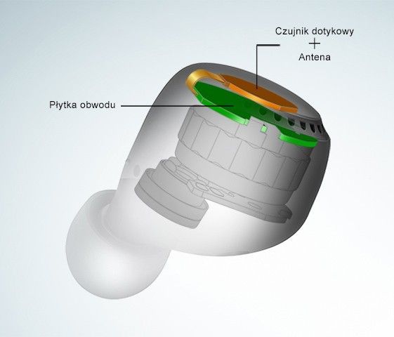 Niewielki rozmiar bezprzewodowych słuchawek S500W uzyskano dzięki zintegrowaniu anteny Bluetooth i czujnika dotykowego wewnątrz elementów sterujących słuchawek. Gwarantuje to niesamowitą stabilność połączeń. Unikalna struktura anteny opracowana przez japońskich inżynierów gwarantuje niezwykłą wydajność nawet w przypadku niewielkiego rozmiaru słuchawek.