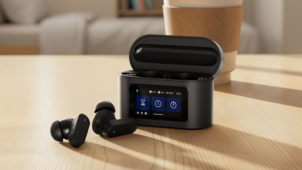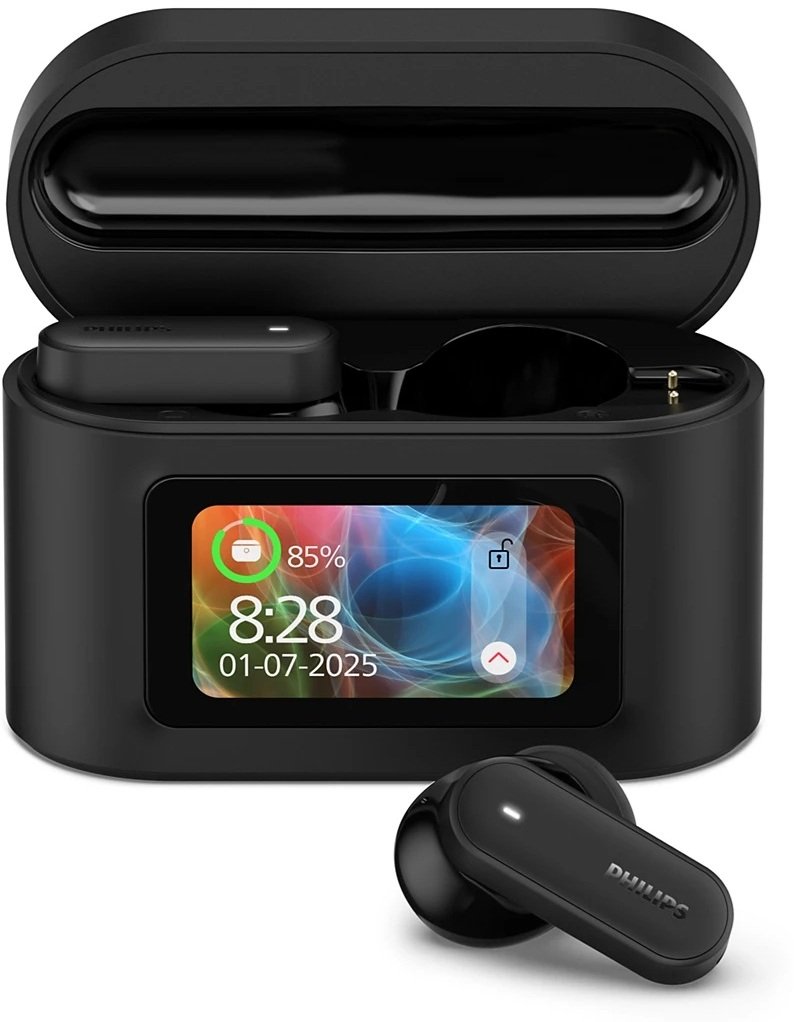 Philips TAT6000BK to zaawansowane słuchawki douszne typu True Wireless, które wyróżniają się innowacyjnym etui ładującym z wbudowanym ekranem dotykowym. Model ten oferuje precyzyjne brzmienie generowane przez 10-milimetrowe przetworniki, zaawansowany system redukcji hałasu oraz stabilną łączność Bluetooth 5.4. Dzięki klasie wodoodporności IPX5 oraz ergonomicznemu kształtowi, urządzenie stanowi wszechstronne narzędzie do pracy, podróży i aktywności fizycznej, umożliwiając pełne zarządzanie funkcjami bez konieczności sięgania po smartfon.