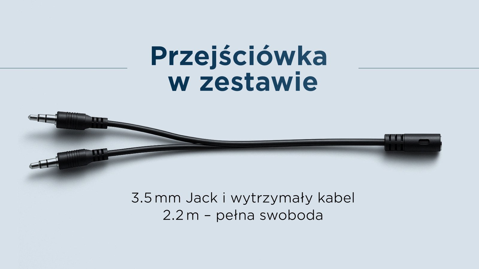 - Przejściówka na złącze mikrofonowe i słuchawkowe: kompatybilność z PC, konsolami i smartfonami.