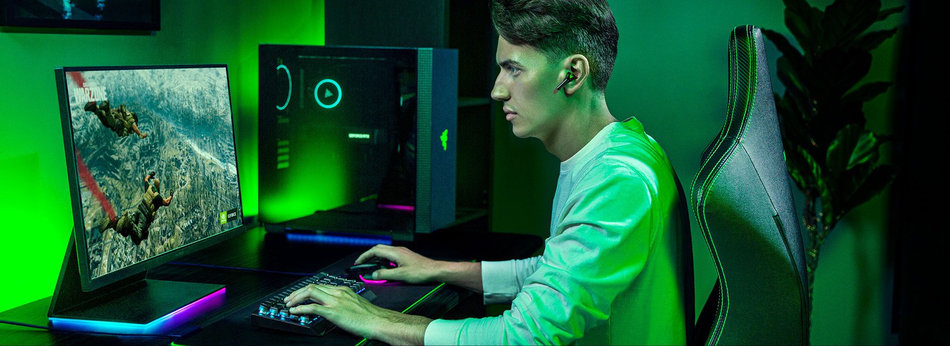 Graj wygodnie i gdziekolwiek chcesz dzięki Razer Hammerhead HyperSpeed, bezprzewodowemu zestawowi słuchawkowemu do gier, który zapewnia zanurzenie bez rozpraszania uwagi i absolutną swobodę. Dzięki połączeniu bezprzewodowemu 2,4 GHz, idealnemu do gier i technologii Bluetooth 5.2, możesz grać w dowolnym miejscu i zabrać je ze sobą wszędzie.