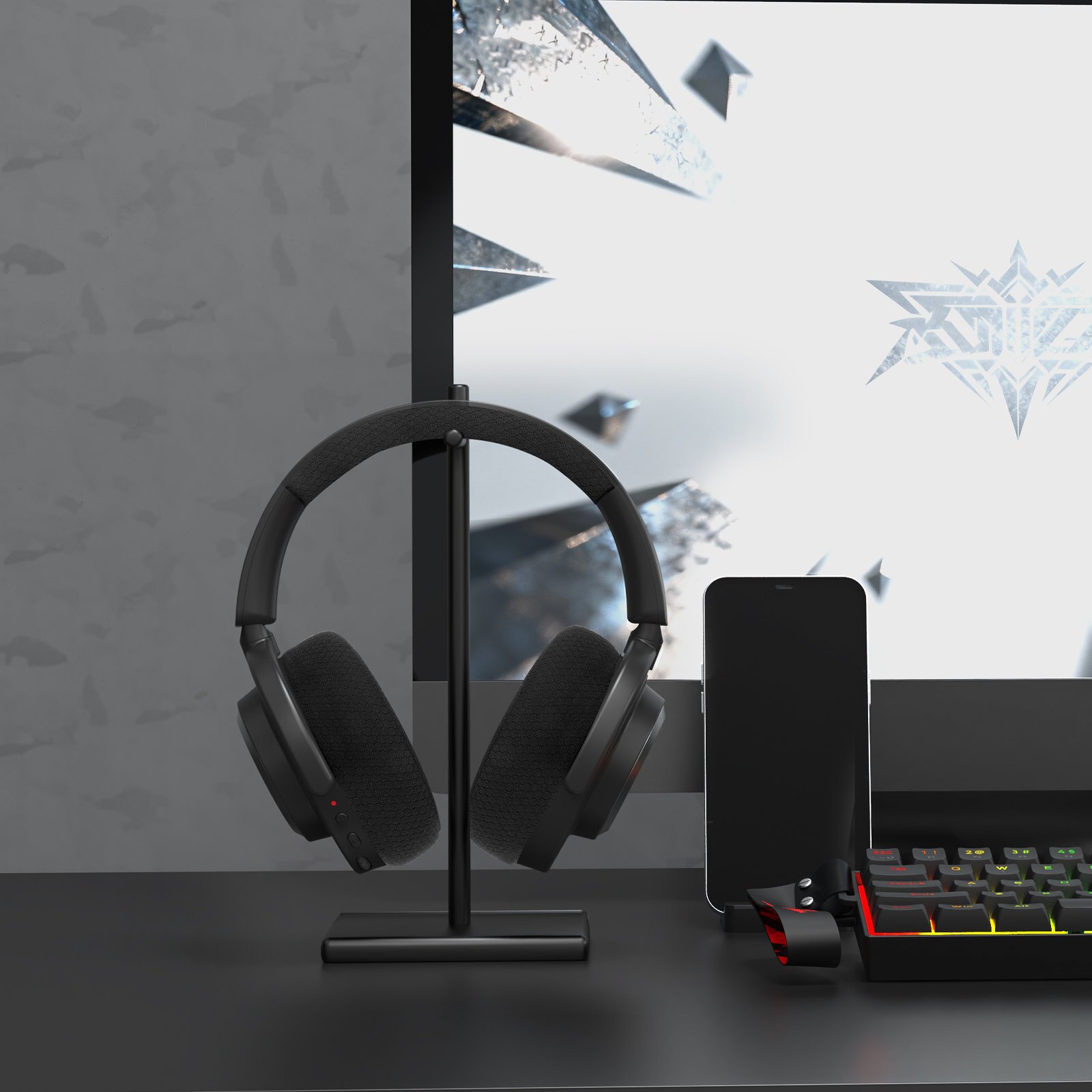 To bezprzewodowe słuchawki, które oferują mocne brzmienie, wysoki komfort użytkowania oraz szeroką kompatybilność z wieloma platformami. Model obsługuje łączność 2.4 GHz oraz Bluetooth, zapewniając stabilne połączenie i swobodę użytkowania bez kabli. Wyposażone w 53-milimetrowe przetworniki oferują szerokie pasmo 20 Hz–20 kHz oraz wysoką czułość 120 dB, zapewniając dynamiczny i szczegółowy dźwięk. Wysuwany mikrofon o charakterystyce dookólnej zapewnia wyraźną komunikację podczas rozgrywki. Komfort zwiększają oddychające, materiałowe nauszniki oraz miękka pianka memory foam, która dopasowuje się do kształtu uszu.