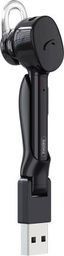 Słuchawka jest niewielka i niezwykle lekka. Nie powoduje dyskomfortu nawet podczas kilkugodzinnego użytkowania. Stacja ładująca ze złączem USB Dzięki złączu USB, stacja ładująca, a co za tym idzie także słuchawka, może być zasilana z ładowarki samochodowej / sieciowej, power banku czy komputera. Automatyczne odbieranie / kończenie połączeń Wystarczy zdjąć słuchawkę ze stacji ładującej, by odebrać przychodzące połączenie i ją odłożyć, żeby je zakończyć. 70 godzin na jednym ładowaniu Raz naładowany gadżet pozwala na~3godziny rozmów / słuchania muzyki. Natomiast w trybie czuwania wytrzyma ponad 70 godzin.