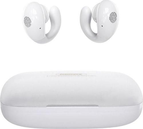 Bezprzewodowe słuchawki douszne stereo marki Remax. Słuchawki umożliwiają długi czas słuchania muzyki oraz rozmowy w trybie głośnomówiącym.