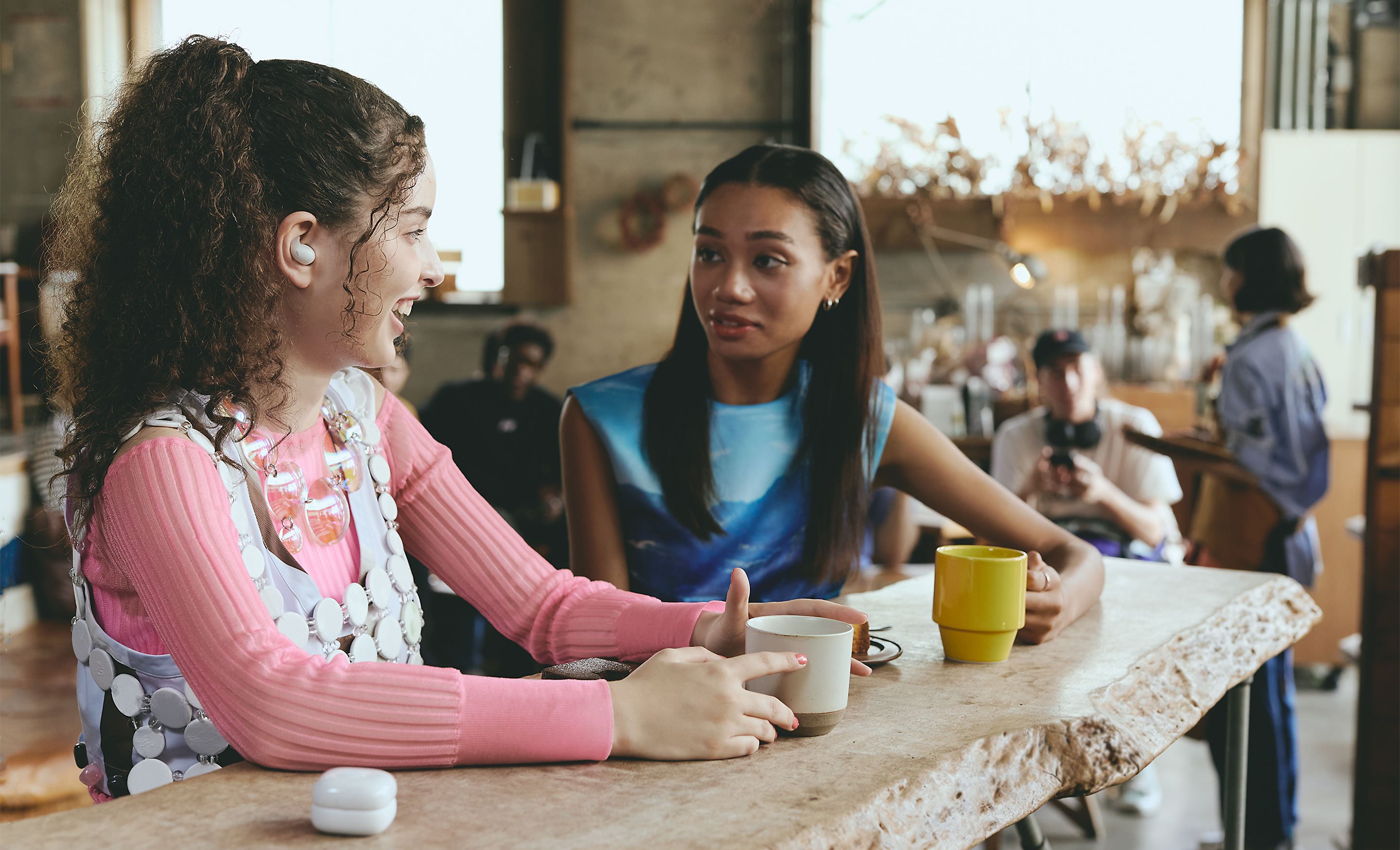 Dzięki technologii Precise Voice Pickup, która wykorzystuje mikrofony na zewnątrz i wewnątrz słuchawek, oraz zaawansowanemu przetwarzaniu dźwięku rozmówca słyszy Cię wyraźnie, nawet gdy wokół jest głośno. Algorytm redukcji hałasu, oparty na sztucznej inteligencji i uczeniu maszynowym z użyciem ponad 500 milionów próbek głosu, tłumi dźwięki otoczenia i wydobywa Twój głos.