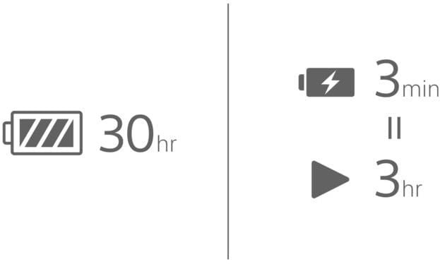 30 godzin pracy na akumulatorze oznacza zapas energii na naprawdę długą wyprawę. A gdy masz zaledwie chwilę na ładowanie, skorzystaj ze sprzedawanego oddzielnie zasilacza sieciowego USB‑PD, by już po 3 minutach móc słuchać przez kolejne 3 godziny.