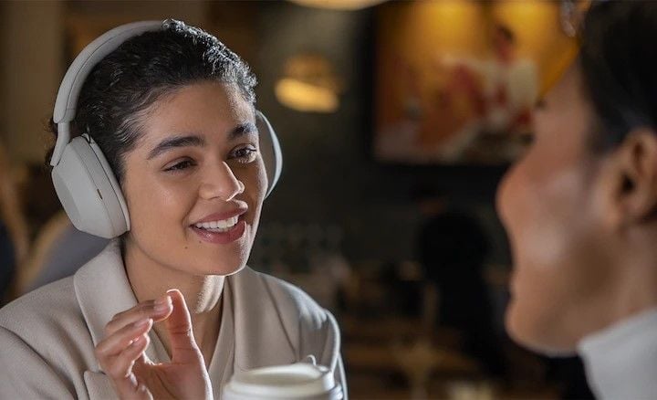 Gdy tylko rozpoczniesz rozmowę, funkcja Speak-to-Chat automatycznie wstrzymuje odtwarzanie i przepuszcza dźwięki z zewnątrz. Jest to wygodne, gdy nie chcesz zdejmować słuchawek lub masz zajęte ręce. Aby rozpoznać Twój głos, ta inteligentna funkcja wykorzystuje mikrofony wbudowane w słuchawki i zaawansowane przetwarzanie sygnału audio. Po zakończeniu rozmowy z powrotem włączy się muzyka.