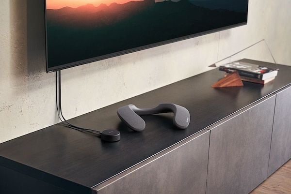 Używając słuchawek WI-C100 i telewizora BRAVIA XR z nadajnikiem bezprzewodowym WLA-NS7, doświadczysz emocjonującego dźwięku Dolby Atmos® i dostosowanego do Twoich uszu dźwięku przestrzennego 360.