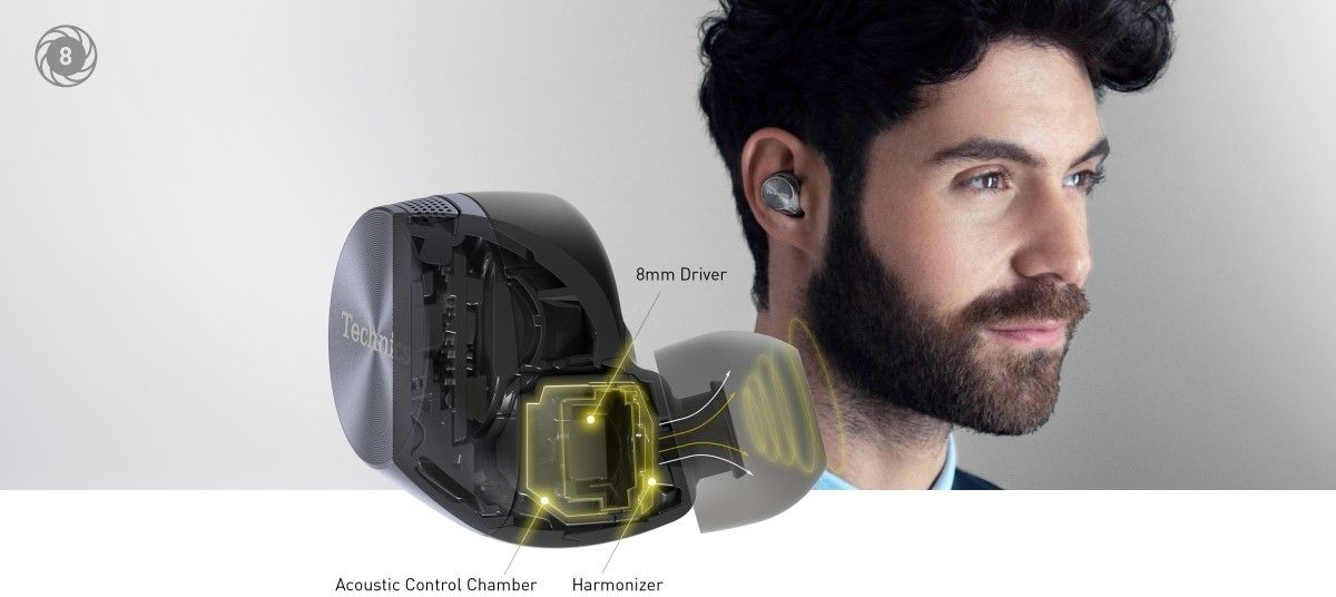 Poczuj wyjątkowej jakości dźwięk dzięki unikalnej konstrukcji komory akustycznej Technics, harmonizerowi oraz 8 mm przetwornikom. Obsługa dźwięku bezprzewodowego wysokiej rozdzielczości LDAC™ zapewnia niezrównaną jakość dźwięku. Dzięki zastosowaniu 8 osobnych mikrofonów i zaawansowanej redukcji szumu wiatru zestaw słuchawkowy EAH-AZ60 przesyła klarowny głos podczas połączeń; technologia JustMyVoice™ pozwala wyizolować i wzmocnić wypowiadane słowa oraz zminimalizować szum otoczenia.