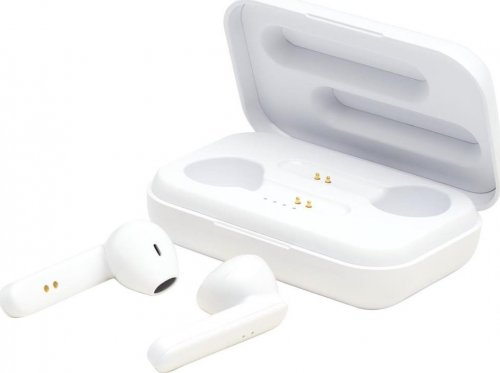 Słuchawki douszne z wielofunkcyjnym przyciskiem do sterowania wszystkimi funkcjami: Włączanie/wyłączanie, odbieranie/rozłączanie, odtwarzanie, pauza, następny/poprzedni utwór, zwiększanie/zmniejszanie głośności, aktywacja asystenta głosowego. Połączenie w technologii Bluetooth® 5.0 o zasięgu do 10 metrów. Czas odtwarzania wynosi do 2 godzin przy maksymalnej głośności, a pełne naładowanie słuchawek trwa 1,5 godziny. Kapsuła zasilająca może w pełni naładować słuchawki douszne co najmniej 2 razy na jednym ładowaniu. Dostarczane w ozdobnym pudełku upominkowym.