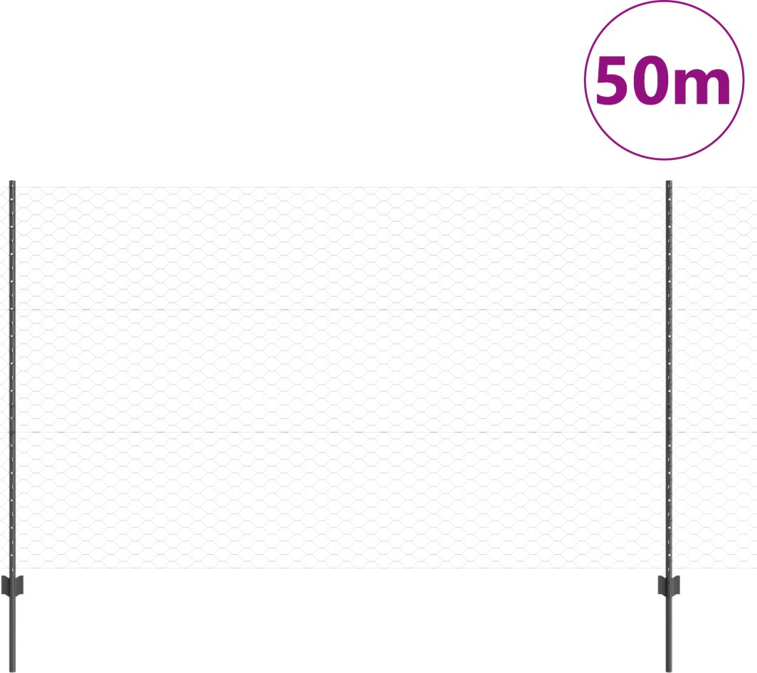 Słupki ogrodzeniowe vidaXL 22 szt. U-Channel Szary 140 cm Stal, Ogrodzenie heksagonalne vidaXL Szare 1.4x50 m Stal