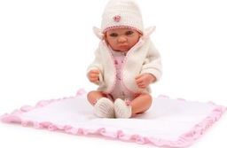 Śliczna laleczka, do złudzenia przypominająca żywe niemowlę sprawi, że jej mała właścicielka poczuje się jak prawdziwa mamusia! Nasza Lena posiada ruchomą główkę, rączki i nóżki. Błyszczące oczy i wyraźnie zarysowane rzęsy podkreślają urok tej dziewczynki. W zestawie znajduje się bawełniane ubranko, skarpetki, czapka oraz kocyk w biało - różowym kolorze. Niezwykła zabawka, która sprawi dziecku wiele radości.