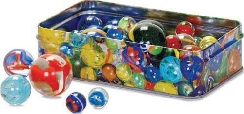 Czy istnieje osoba, która nigdy nie poddała się urokowi szklanych kulek wypełnionych w środku kolorowymi smugami? Zestaw zawiera kolorową puszkę, w której schowane jest 60 szklanych kulek, które pozwolą odkryć na nowo starą jak świat podwórkową grę w kulki.