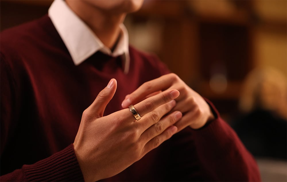 Do wykonania smartringu Gen 2 Air RingConn wykorzystano tytanową stal z powłoką PVD oraz żywicę epoksydową klasy medycznej, co gwarantuje trwałość i bezpieczeństwo dla skóry. Pierścień ma grubość zaledwie 2 mm, dzięki czemu pozostaje niemal niewyczuwalny podczas noszenia, a wodoszczelność w standardzie IP68 (do 100 m głębokości) pozwala korzystać z niego w każdych warunkach – od treningu po codzienne aktywności. Dla najlepszej dokładności pomiarów zaleca się noszenie go na palcu wskazującym, choć zachowuje precyzję także na środkowym lub serdecznym.