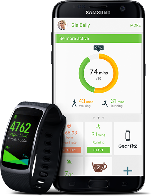 Z myślą ointuicyjnościInterfejs Gear Fit2 jest łatwy do opanowania. Przemyślane wzornictwo sprawia, że sprawdzanie postępów, czy nawet godziny, to pestka. |
