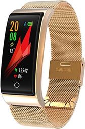 Wysokiej klasy złoty smartband damski F4 to propozycja dla kobiet które cenią minimalizm i elegancję swojego zegarka. Jeśli poszukujemy czegoś skromniejszego o mniejszych wymiarach niż typowy smartwatch, to jest to propozycja idealna dla nas. Taki zegarek pozwoli nam na wygodne użytkowanie w dowolnym czasie i miejscu. Złoty smartband damski f4 Dostępna w naszej ofercie złota opaska dla kobiet jest bardzo funkcjonalnym urządzeniem. Jej parametry nie odbiegają od najlepszych produktów typu smartwatch, dlatego też jest to propozycja, która bardzo dobrze sprzedaje się w naszym sklepie internetowym. Złota opaska dla kobiet Złoty smartband dmaski F4 posiada bardzo istotne tryby sportowe, w których jest aż 5 różnych kategorii sportowych. Oprócz tego zegarek posiada szereg funkcji monitorujących, takich jak krokomierz, pulsometr, monitor snu, monitor spalonych kalorii, pomiar ciśnienia krwi a także przebyty dystans każdego dnia. Jeśli potrzebujemy stylowego i multi funkcjonalnego zegarka, to jest to propozycja zdecydowanie dla Ciebie! MULTIFUNKCYJNOŚĆ! MODEL ten posiada wiele wbudowanych praktycznych funkcji takich jak: tryb multisport (5 trybów sportowych tj. tenis, pływanie, skakanka, tenis stołowy, badminton) krokomierz pulsometr monitor snu monitor spalonych kalorii pomiar ciśnienia krwi przebyty dystans budzik powiadomienie o połączeniach i wiadomościach z Messengera, Whats Upa identyfikacja dzwoniącego funkcja znajdź telefon podświetlanie ekranu podczas ruchu ręką SMARTBANDEM możesz swobodnie zarządzać łącząc go poprzez Bluetooth ze swoim telefonem używając do tego celu prostej aplikacji FlagFit w JĘZYKU POLSKIM. PROSTE MENU OBRAZKOWE ZAPEWNIA ŁATWĄ INTUICYJNĄ OBSŁUGĘ ZEGARKA. SPECYFIKACJA - PARAMETRY TECHNICZNE Kolorowy wyświetlacz TFT 0,96" o rozdzielczości 80x160 G-sensor Dynamiczny interfejs Bateria 105 mAh WYTRZYMAŁOŚĆ BATERII PRZY CIĄGŁYM UŻYTKOWANIU OK. 10-14 DNI Czas ładowania 2h Stal nierdzewna Bluetooth 4.0 Kompatybilność Dla iOS 8.0 lub nowszy, i Android 4.4 lub nowszy Procesor Nordic NRF51822 Klasa wodoodporności IP67 Rozmiary 48mm x 20mm x 11,6mm Oferowany przez nas zestaw obejmuje: SMARTBAND SPORT KABEL USB DO ŁADOWANIA POLSKĄ INSTRUKCJĘ OBSŁUGI