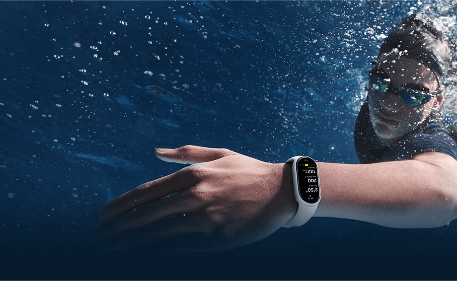 Dzięki wodoszczelności 5 ATM opaska pozwala na bezpieczne pływanie w basenie oraz open water – jezioro czy morze. Zaawansowany czujnik tętna działa również pod wodą, umożliwiając monitorowanie pracy serca podczas ćwiczeń pływackich.