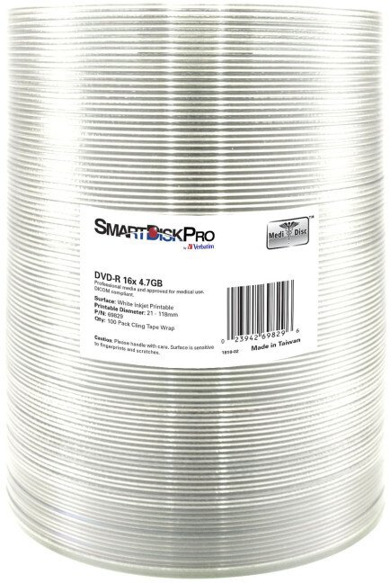 SmartDisk DVD-R, White Inkjet Printable, 69829, 4.7GB, 16x, wrap, 100-pack, 12cm, do archiwizacji danych