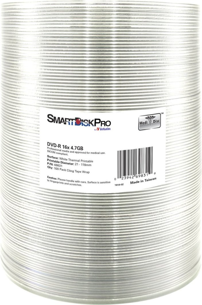 Smartdisk DVD-R, White Thermal Printable, 69831, 4.7GB, 16x, wrap, 100-pack, 12cm, do archiwizacji danych